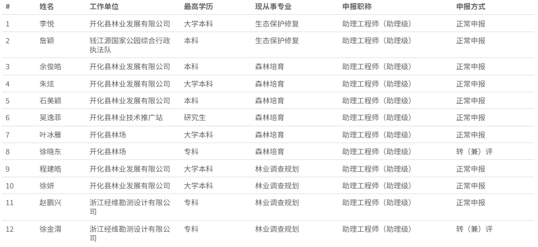 经开化县第二工程系列初级技术正职务任职评审委员会2025年10月18日评审通过,吴逸菲等12人具有助理工程师职务任职资格,现予以公示,接受社会监督。现将有关事项通告如下: