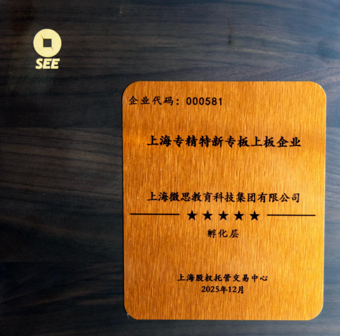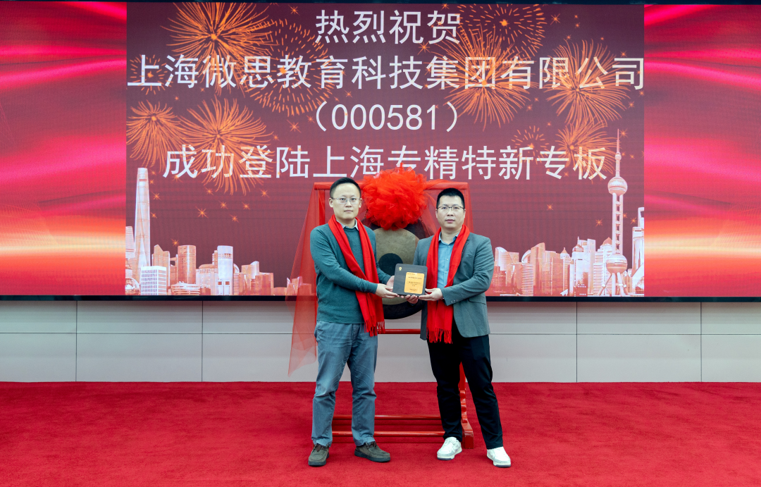 2025年12月11日,上海微思教育科技集团有限公司(以下简称“微思咨询”)迎来了发展史上的重要里程碑。公司于上海股权托管交易中心隆重举行挂牌敲钟仪式,成功登陆上海“专精特新”专板,代码:000581。集团总经理赵德志先生、副总经理周泽昆先生携核心管理团队出席仪式,共同见证了这一荣耀时刻。