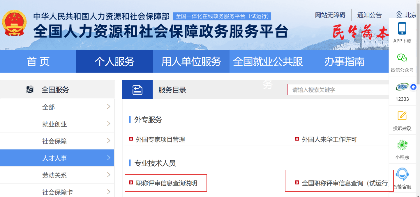 1. 全国人力资源和社会保障政务服务平台(www.12333.gov.cn)