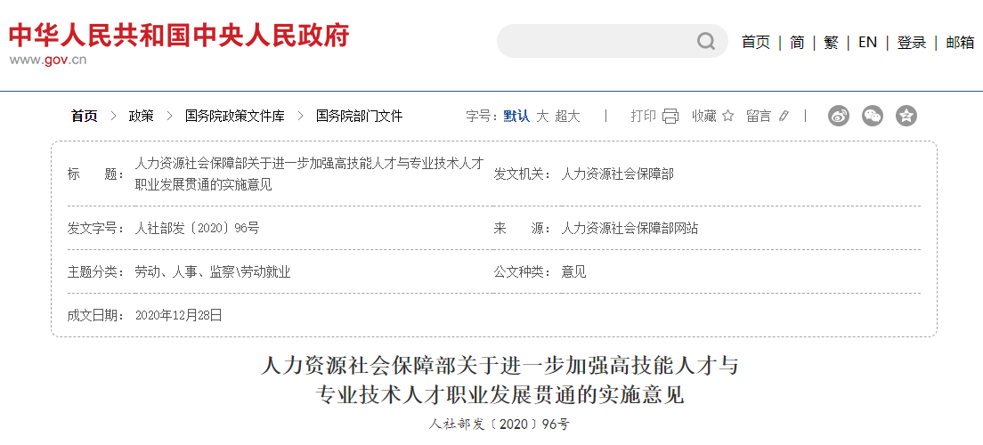 根据《高技能人才与专业技术人才职业发展贯通实施办法》