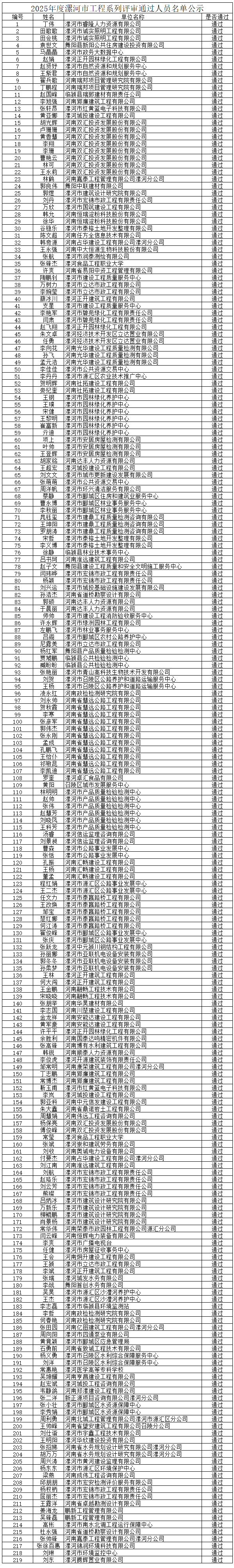 【职称公示】2025年度河南省漯河市工程系列评审通过人员名单公示