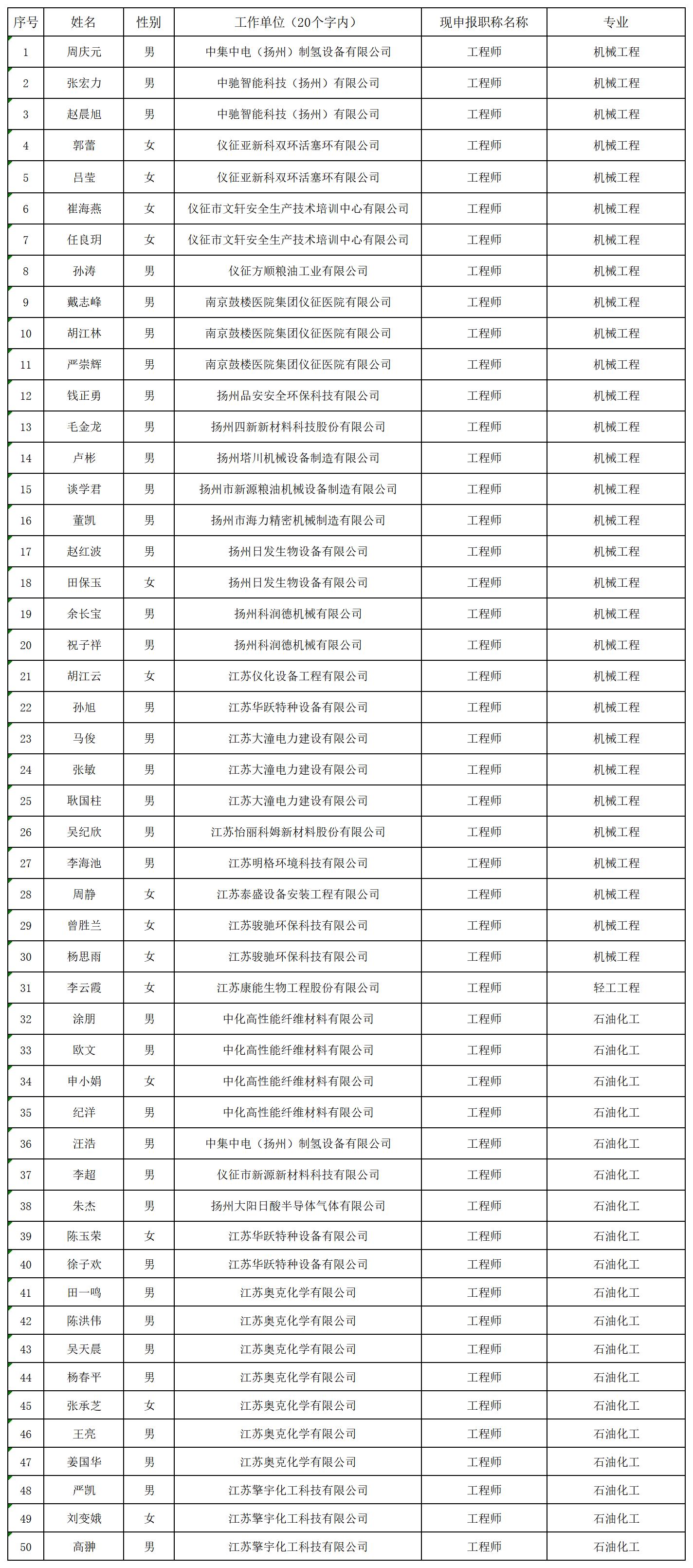 2025年仪征市工业工程中级职称评审通过人员公示名单