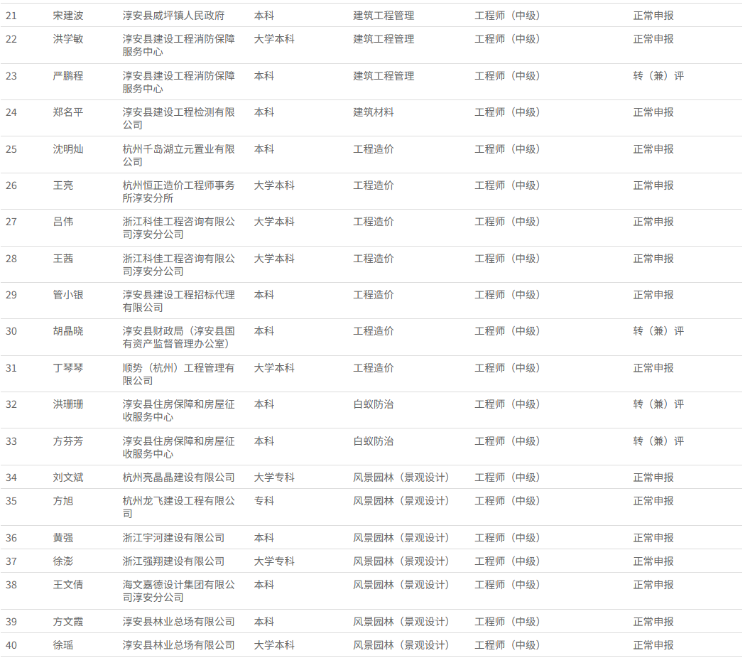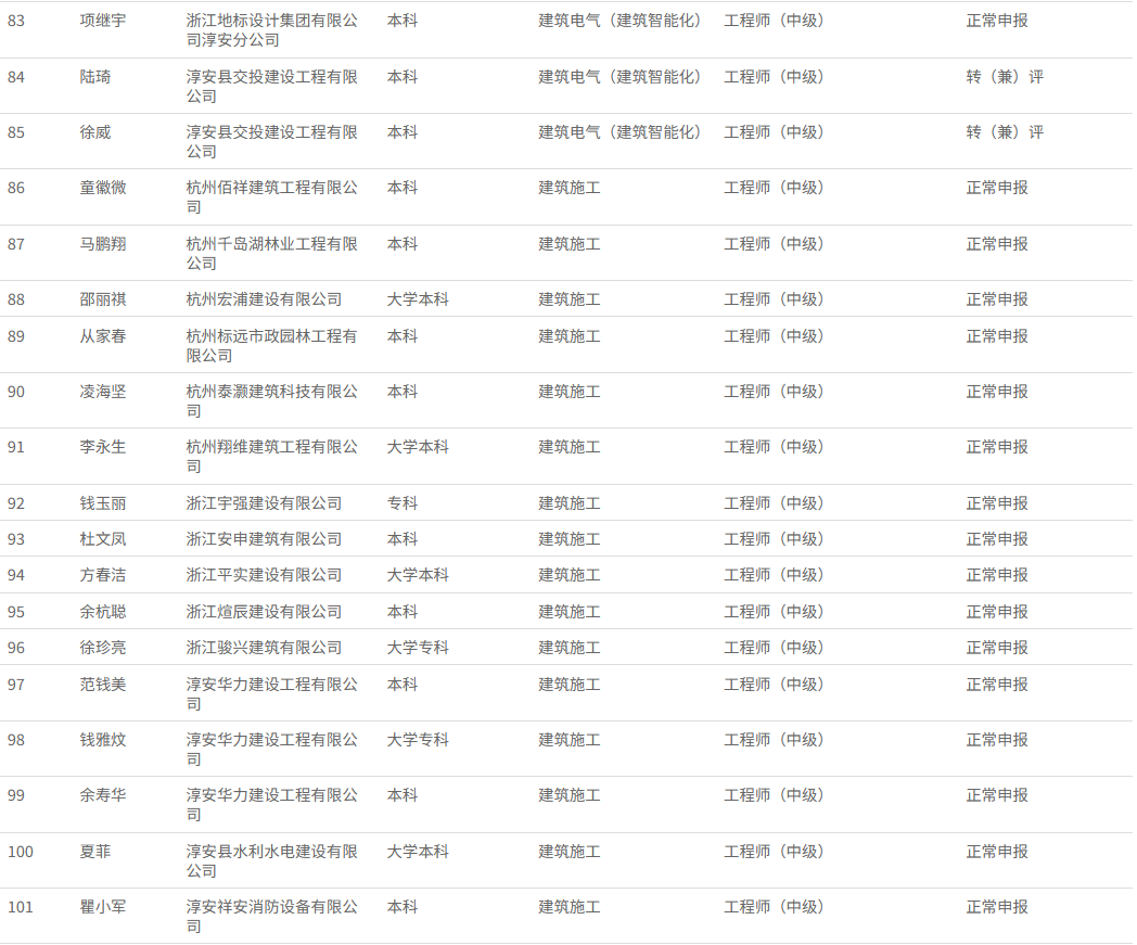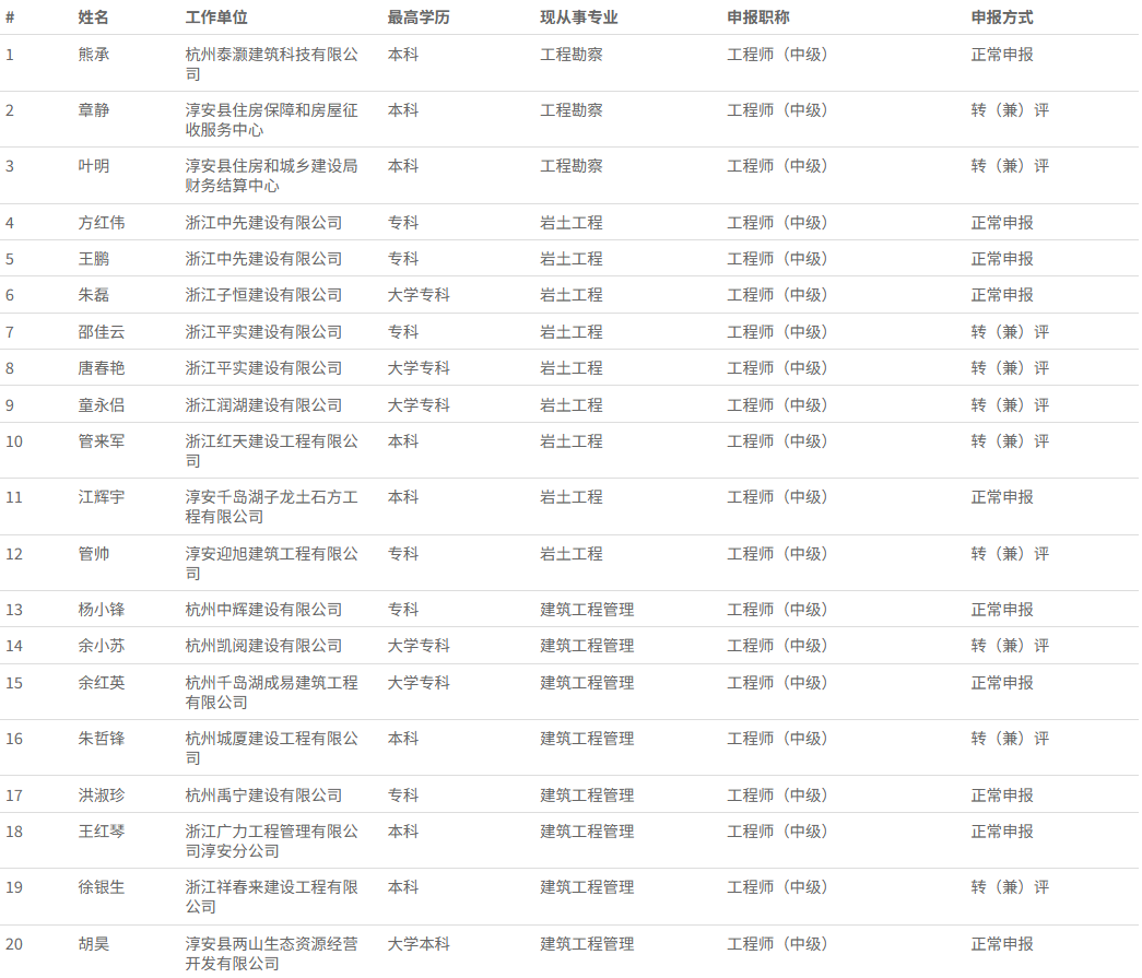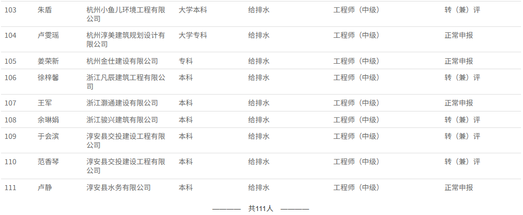 经淳安县建设工程技术人员工程师职务任职资格评审委员会2025年11月2日评审通过,熊承等111人具有工程师职务任职资格,现予以公示,接受社会监督。现将有关事项通告如下: