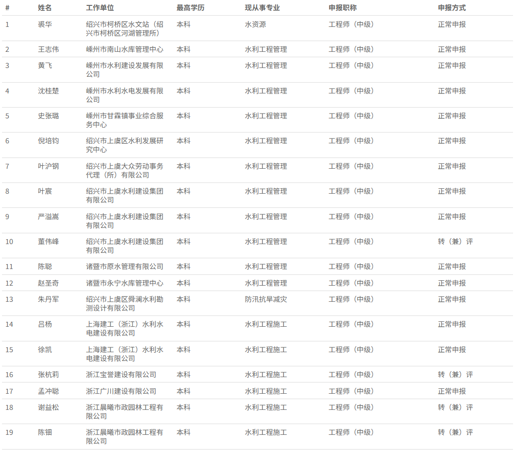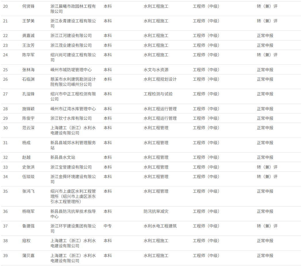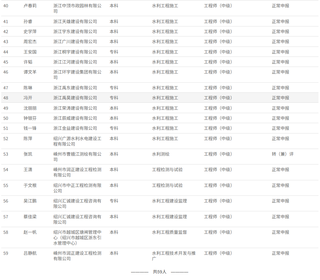 经绍兴市水利工程中级专业技术职务任职资格评审委员会2025年11月8日评审通过,谭文羊等59人具有个水利专业工程师职务任职资格,现予以公示,接受社会监督。现将有关事项通告如下: