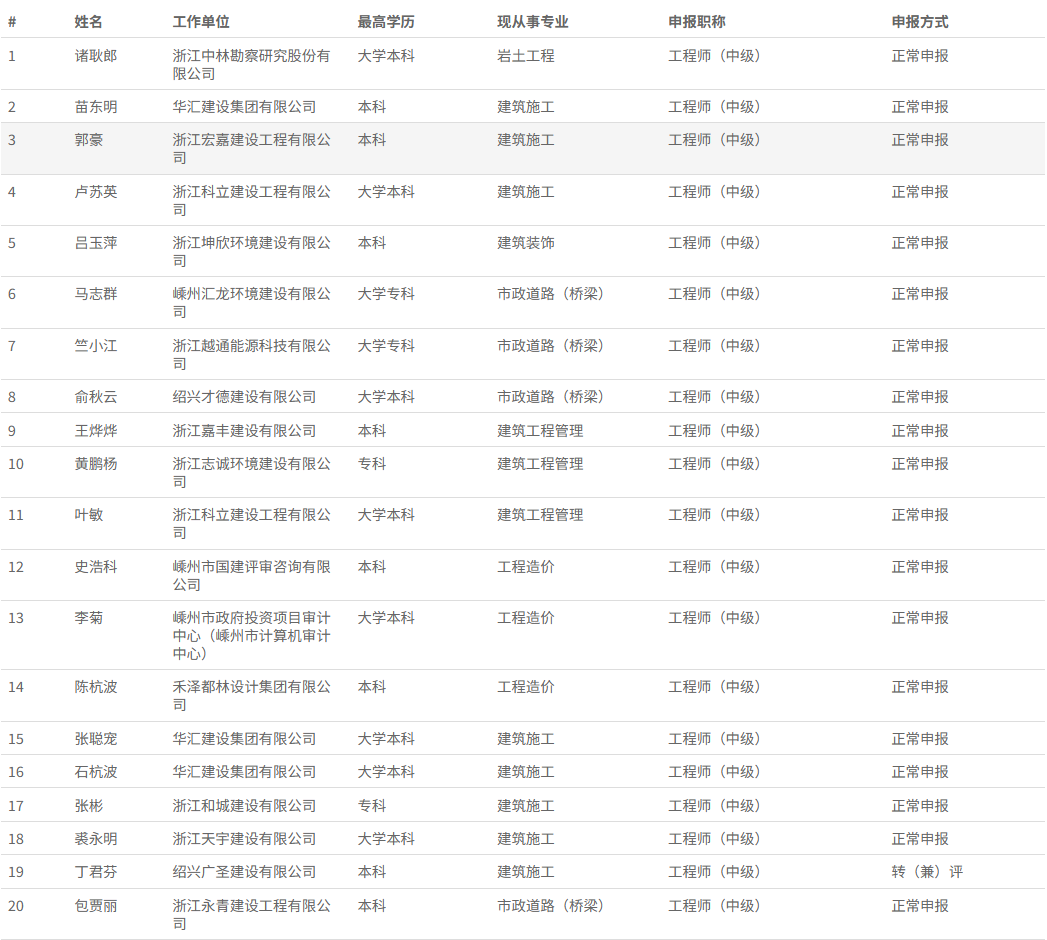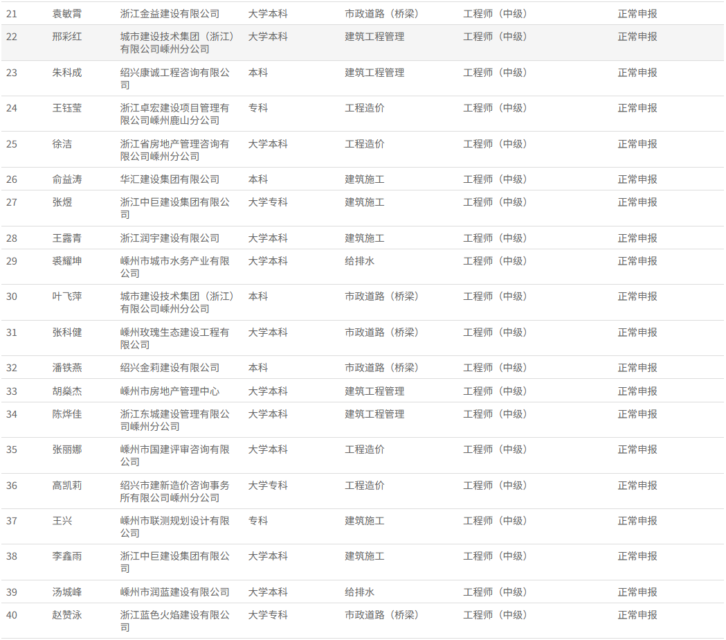 经2025年度嵊州市建设工程专业工程师专业技术职务评审委员会2025年11月22日评审通过,诸耿郎等46 人具有工程师职务任职资格,现予以公示,接受社会监督。现将有关事项通告如下: