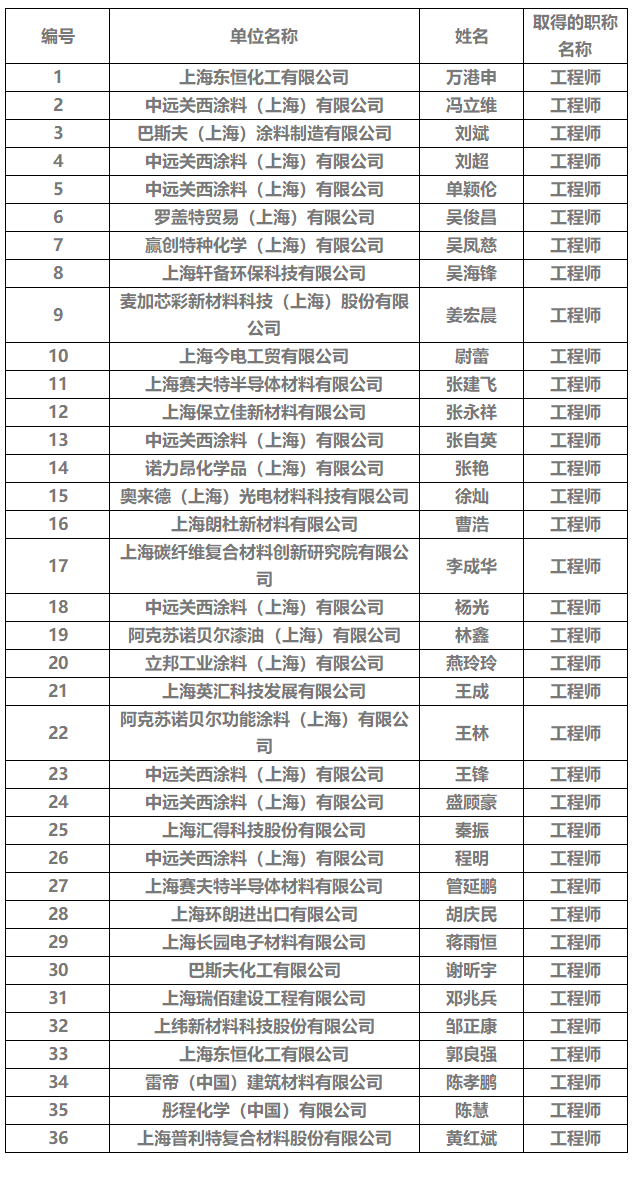 【职称公示】2025年上海市工程系列化工专业中级职称评审委员会(金山区)评审通过人员名单公示