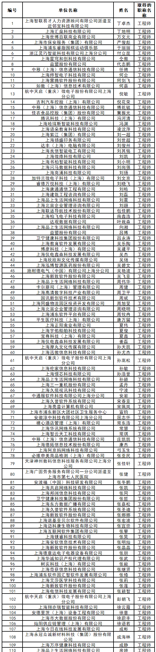 【职称公示】2025年度上海市工程系列计算机与数字技术(浦东新区)中级职称评审通过人员名单公示