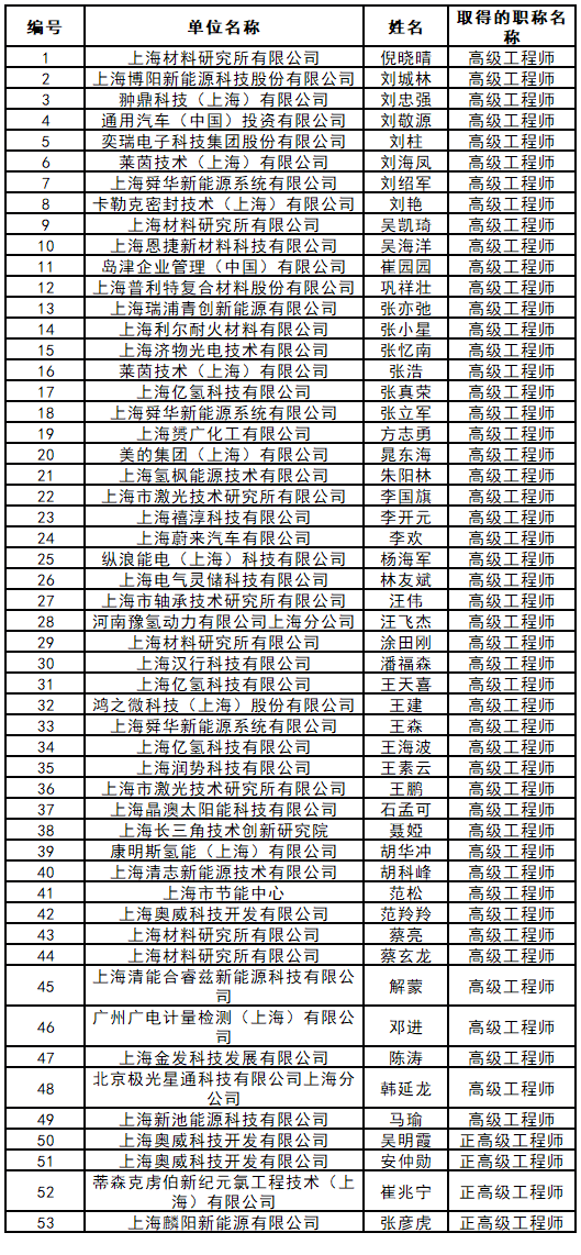 2025年度上海市工程系列新材料与能源专业高级职称评审委员会评审通过人员名单公示