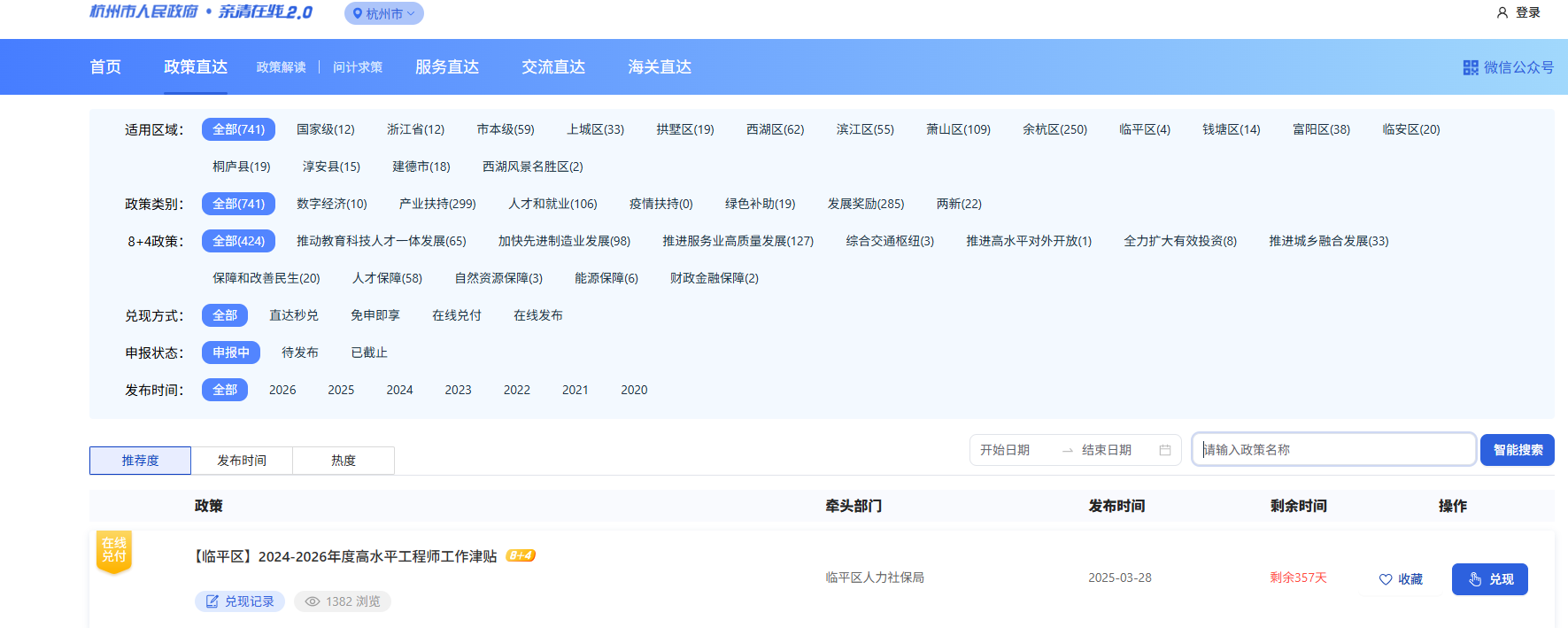 2.申领时,自取得高级工程师职称之日起需正常连续缴纳社会保险(不含补缴)满一年及以上,且仍在临平区用人单位就职;