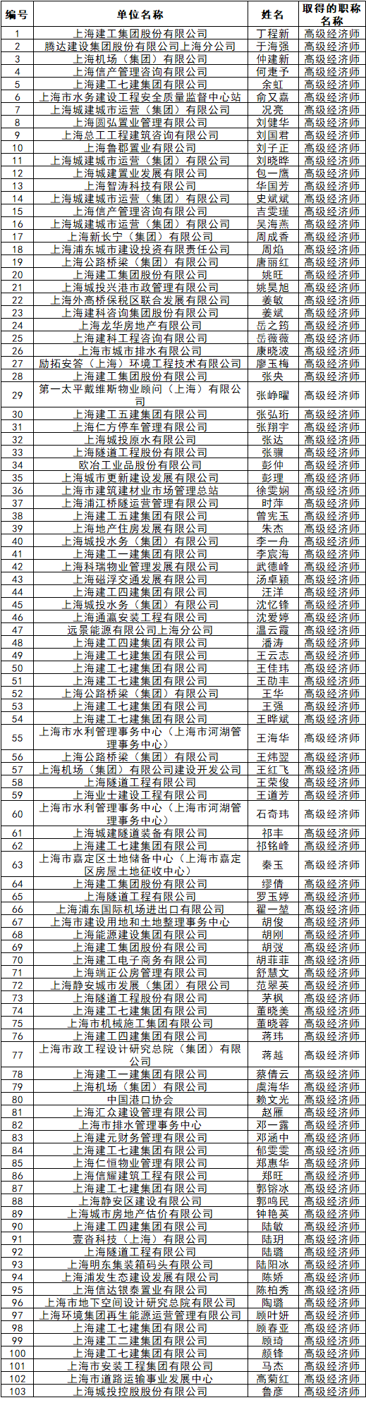 【职称公示】2025年度上海市经济系列城市建设与交通专业高级职称评审委员会评审通过人员名单公示