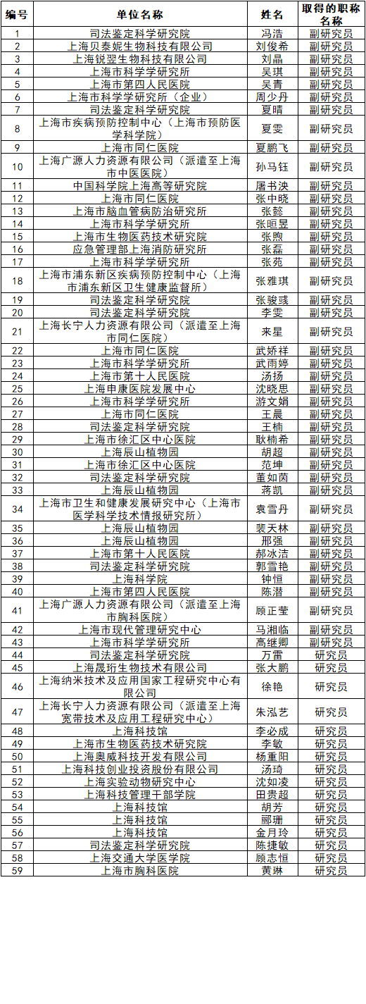 【职称公示】2025年度上海市自然科学研究系列高级职称评审委员会评审通过人员名单公示