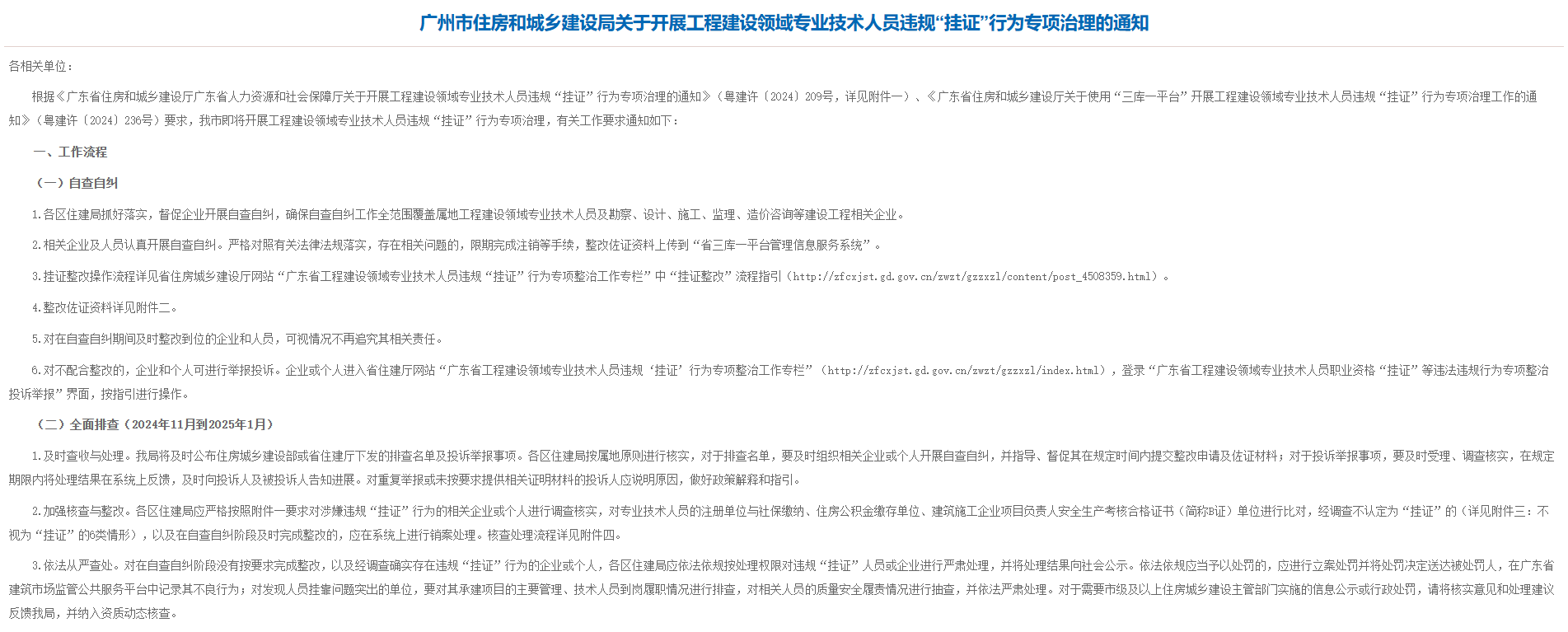 近期广东省住建厅持续开展工程建设领域违规挂证专项治理,明确查处重点: