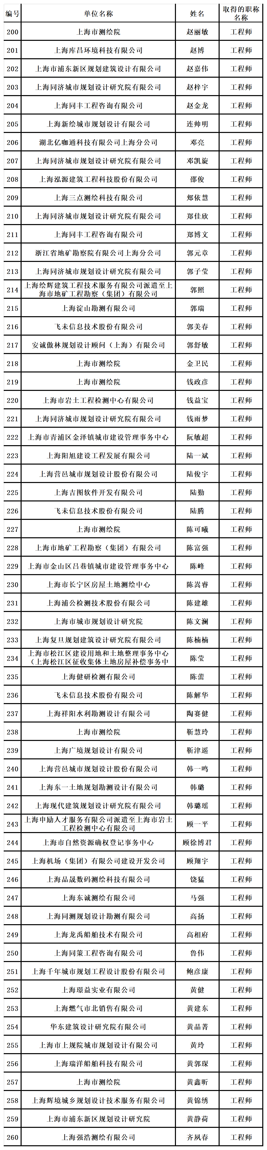 2025年度上海市工程系列规划资源专业高级职称评审通过人员名单公示