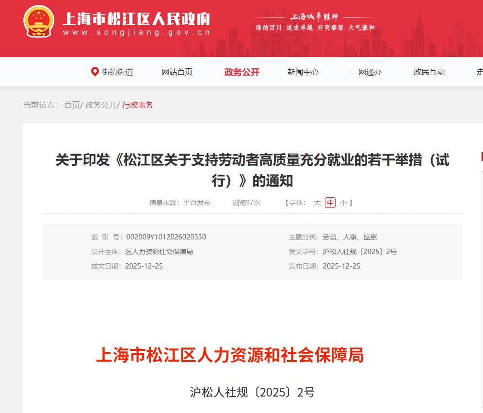 访问松江区人民政府官网·人社局专栏(https://www.songjiang.gov.cn/rsj/),在“网上办事”→“企业办事”中找到“职称补贴申报”通道,跳转至一网通办申报界面,操作流程与主入口完全一致。