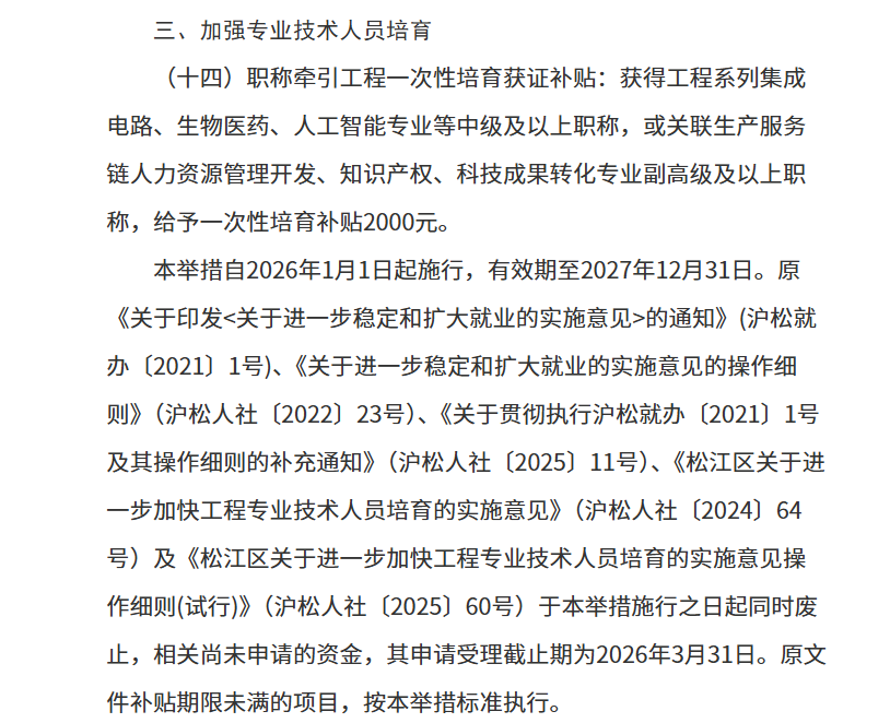 松江持证人们注意啦! 只要你评上指定专业职称,就能领取每人2000元一次性补贴,由所在企业统一申请。