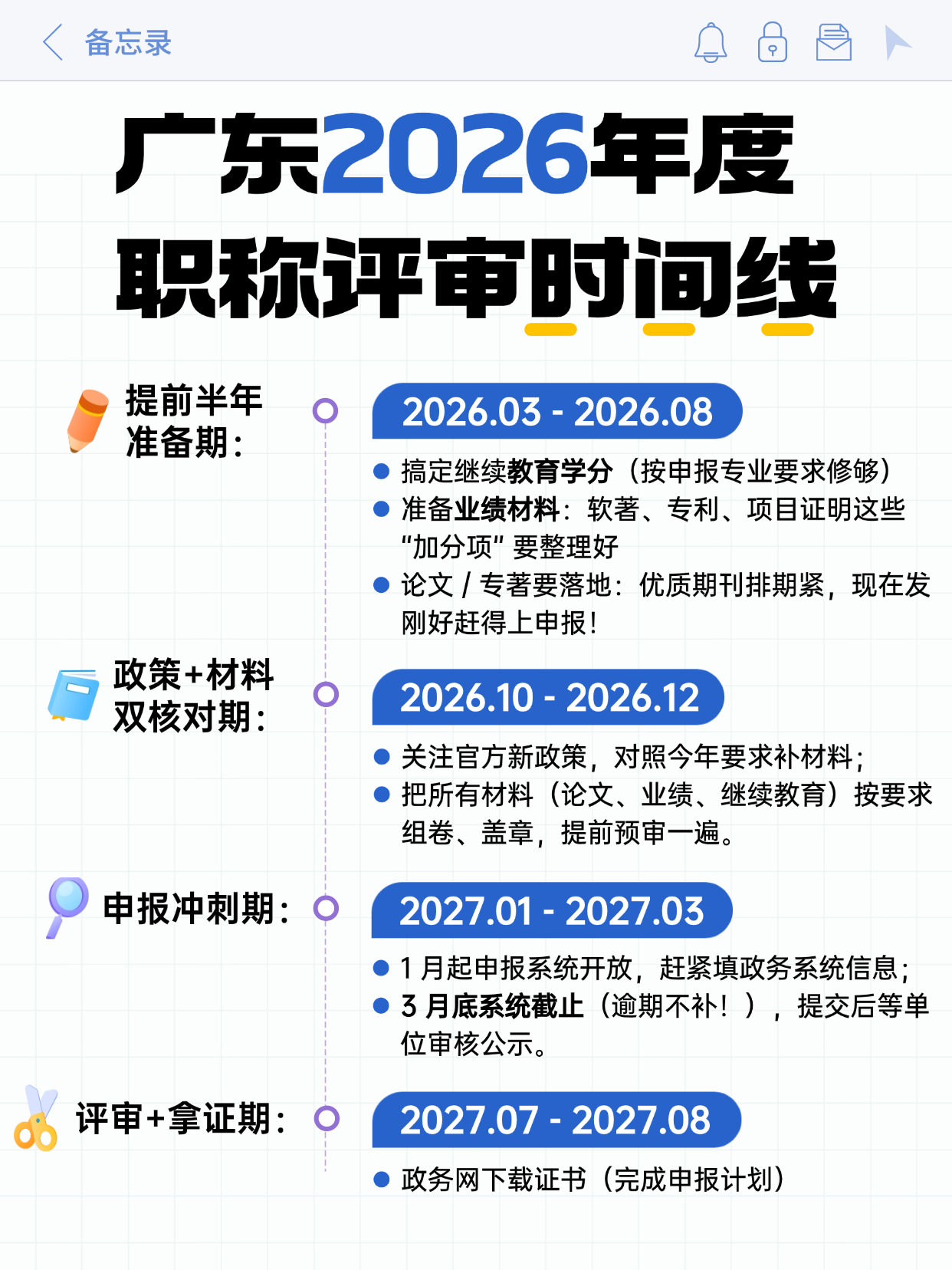 职称评审这事儿,“卡时间”=“白忙活”!2026 年广东职称申报的关键节点已经明确,今天帮大家理清楚每个阶段要做啥、啥时候做,照着走准没错~