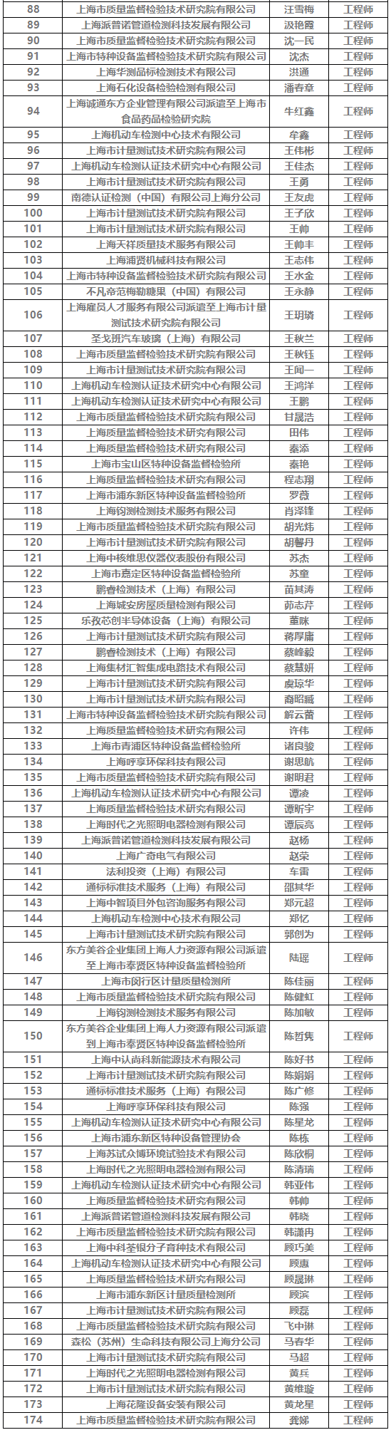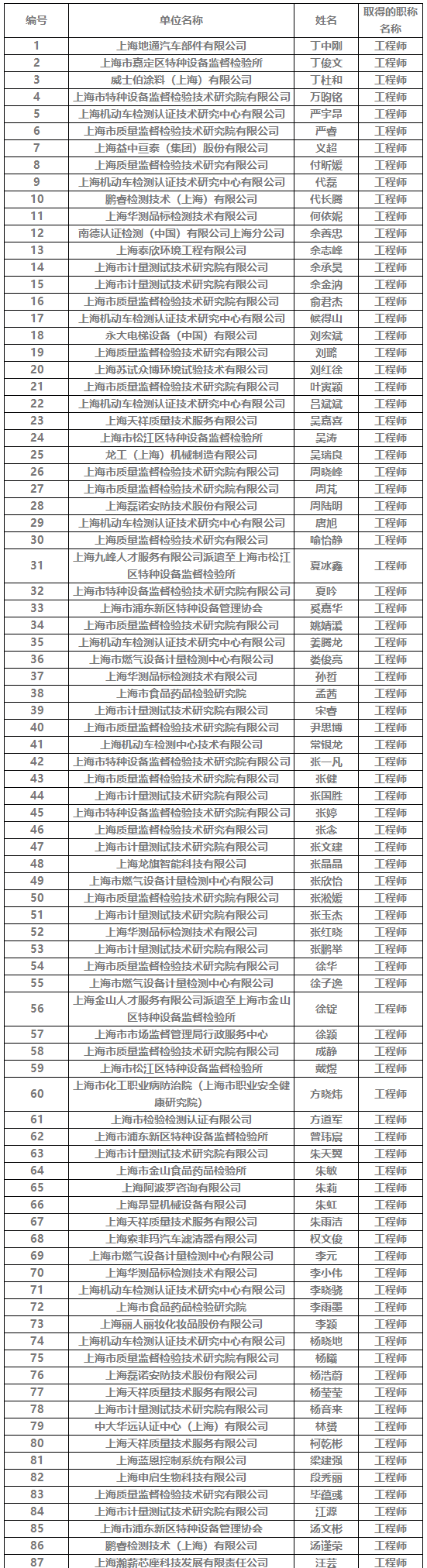 【职称公示】2025年度上海市市场监督管理局工程系列中级职称评审委员会评审通过人员名单公示