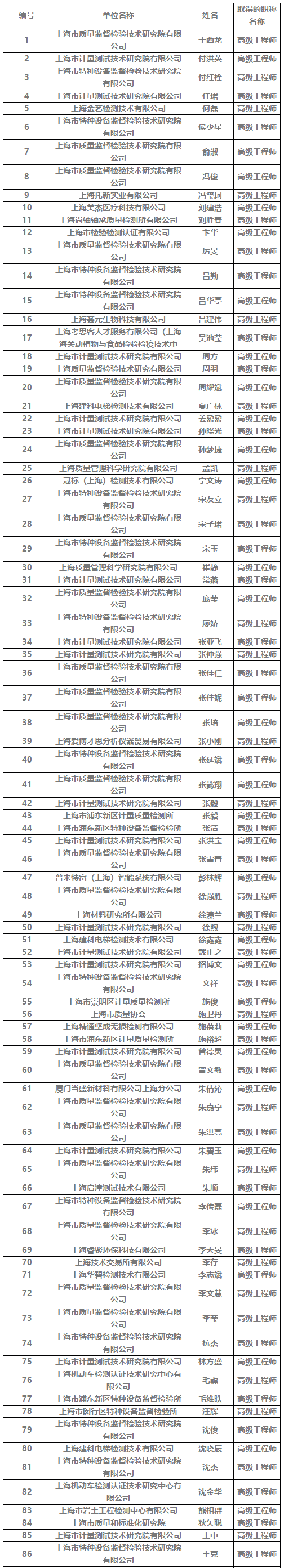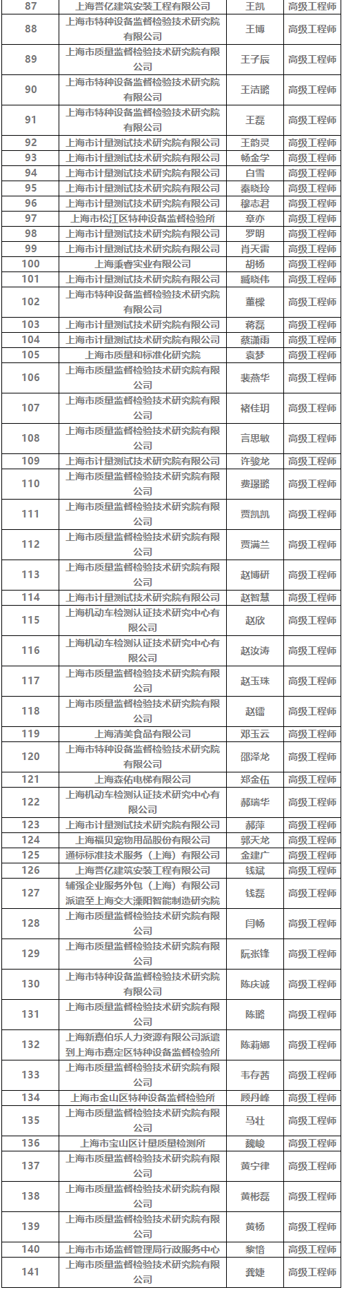 【职称公示】2025年度上海市工程系列质量技术监督专业高级职称评审委员会评审通过人员名单公示